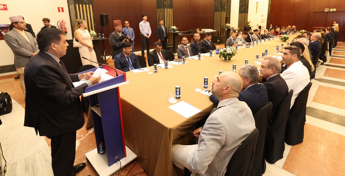 बुधबार म्याड्रिडस्थित नेपाली दूतावासले आयोजना गरेको कार्यक्रममा उनले पर्यटन, ऊर्जा, कृषि, सूचना प्रविधि र पूर्वाधार क्षेत्रमा स्पेनका व्यवसायीहरूलाई लगानीका लागि आग्रह गर्नुभएको महासङ्घले जनाएको छ।