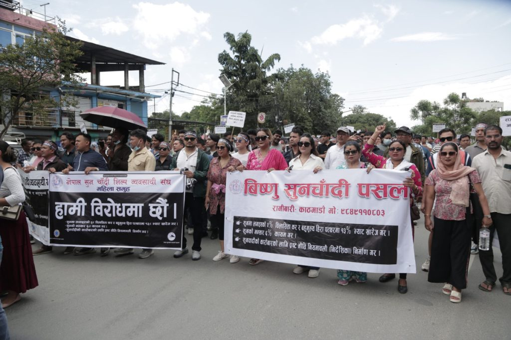 शुक्रबार नेपाल सुन चाँदी व्यवसायी महासंघ, नेपाल सुनचाँदी रत्न तथा आभूषण महासंघ र नेपाल हस्तकला महासंघको अगुवाइमा व्यवसायीहरूले र्याली निकालेका हुन्। माइतीघर मण्डलदेखि निकालिएको उक्त र्याली नयाँ बानेश्वरमा पुगेर कोण सभामा परिणत हुनेछ।