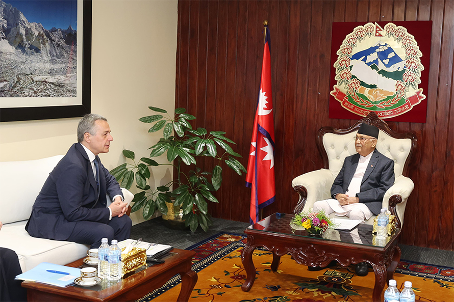 काठमाडौ २३ असार । प्रधानमन्त्री केपी शर्मा ओलीसँग स्विट्जरल्यान्डका सङ्घीय विदेशमन्त्री इग्नाजिओ डानियल जिओभान्नी क्यासिसले भेटवार्ता गरेका छन् ।