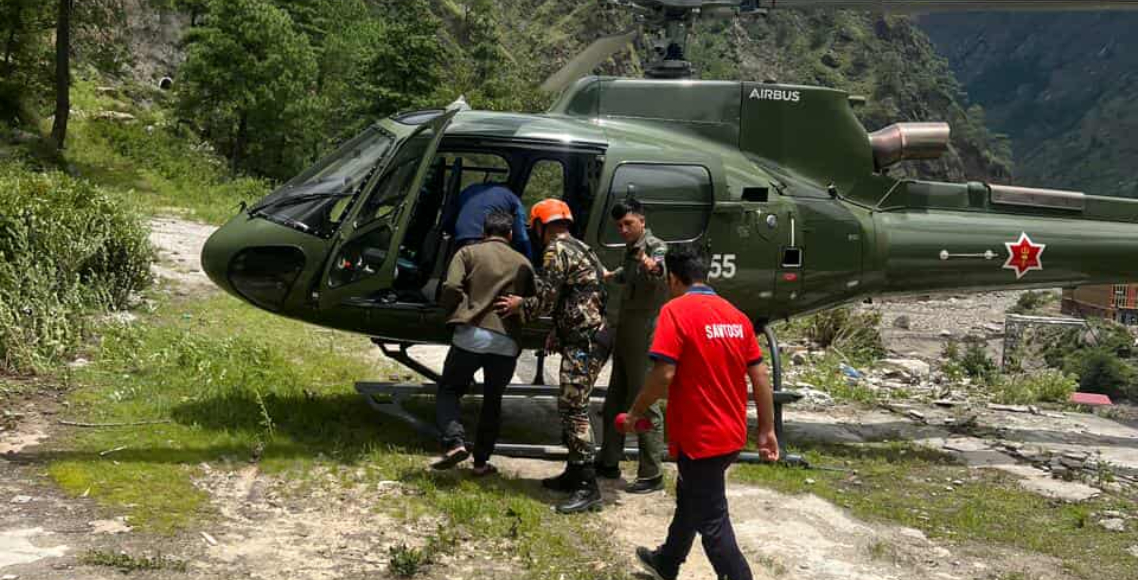 नेपाल चीन सिमानाको लेन्डे खोला हुँदै भोटेकोसी नदीमा आएको बाढीका कारण रसुवाको गोसाईंकुण्ड गाउँपालिका–२ स्थित रसुवागढी जलविद्युत आयोजनामा फसेका २३ जना कामदारहरूलाई अन्य सुरक्षा निकाय र स्थानीयहरूको समन्वयमा नेपाली सेनाको हेलिकप्टरमार्फत सुरक्षित स्थानमा स्थानान्तरण गरिएको सेनाले जनाएको छ।