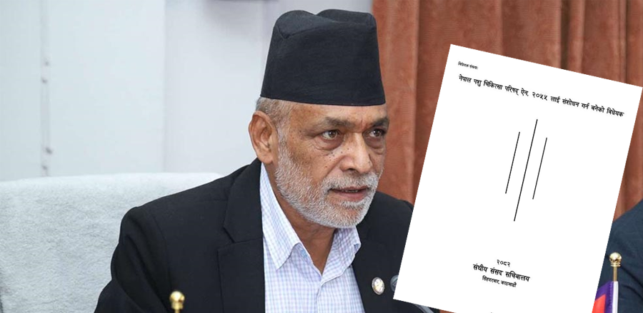 काठमाडौ २९ असार । नेपाल पशु चिकित्सा परिषद् पहिलो संशोधन विधेयक, २०८२ प्रतिनिधिसभामा दर्ता भएको छ ।