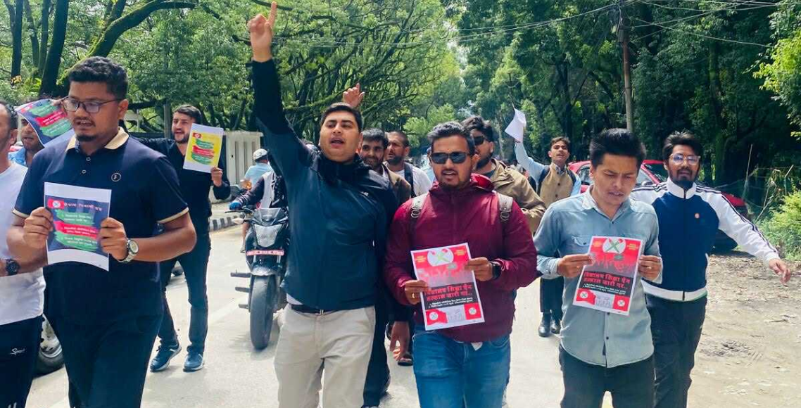 नेविसंघले बल्खु सडकदेखि उपकुलपति कार्यालयसम्म चक्काजामा गरेर प्रर्दशन गरेको थियो। प्रदर्शनमा नेविसंघ केन्द्रीय सदस्य तथा त्रिवि स्वतन्त्र विद्यार्थी युनियनका अध्यक्ष दीपकराज जोशी, नेविसंघ केन्द्रीय सदस्य डन्डीराज जोशी, नेविसंघ त्रिवि समिति बडैला, ताहाचल क्याम्पसका नेविसंघ नेता पुष्पराज बटाला लगायतका विद्यार्थीहरू सहभागी थिए।