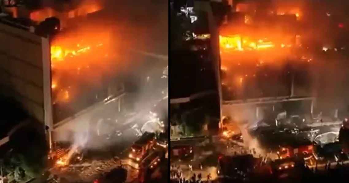 सामाजिक सञ्जालमा भाइरल भिडिओमा विशाल भवनको ठूलो भाग आगोमय भएको देखिन्छ।