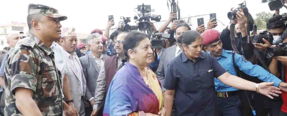 काठमाडौ ४ साउन । नेकपा एमालेका अध्यक्ष केपी ओलीसँग छलफल गर्न पूर्वराष्ट्रपति विद्यादेवी भण्डारी एमालेको केन्द्रीय कार्यालय च्यासल पुगेकी छन्।