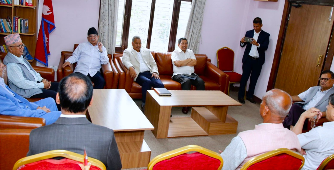 बैठकमा माओवादी केन्द्रका नेताहरू पुष्पकमल दाहाल ‘प्रचण्ड’, नारायणकाजी श्रेष्ठ, कृष्णबहादुर महरा लगायत उपस्थित छन्। त्यस्तै नेकपा एकीकृत समाजवादीबाट अध्यक्ष माधव नेपाल, घनश्याम भुसाल लगायत छन्।