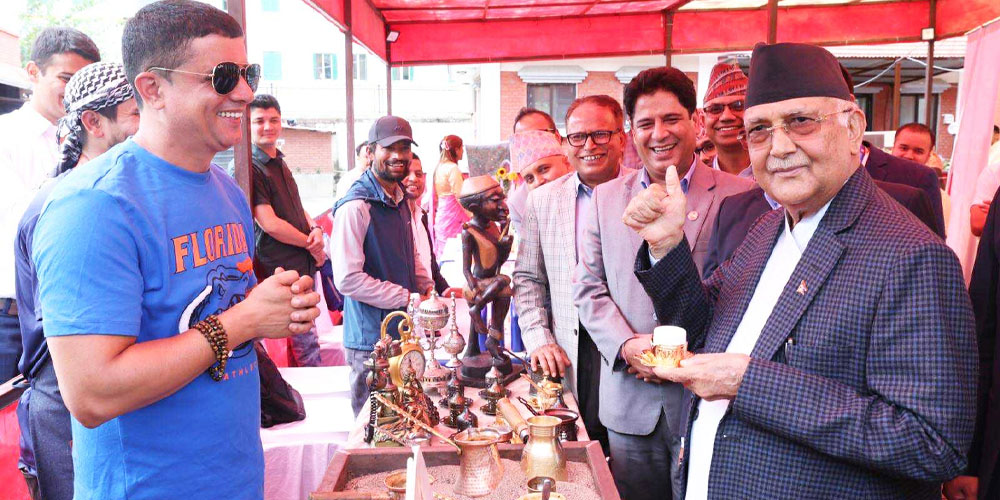कार्यक्रममा नेपाली उद्यमीका विविध उत्पादन स्टलको प्रधानमन्त्रीले अवलोकन गर्नुभएको थियो ।