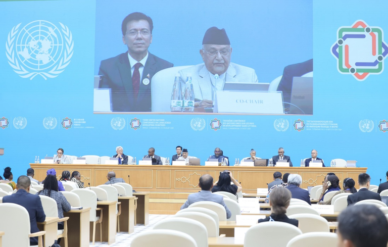 काठमाडौ २१ साउन । भूपरिवेष्टित विकासशील राष्ट्रहरू एलएलडीसी० को तेस्रो संयुक्त राष्ट्रसंघीय सम्मेलनअन्तर्गत व्यापार तथा वाणिज्यको सहजीकरण र क्षेत्रीय सहकार्यसम्बन्धी राउन्ड टेबल सुरु भएको छ।