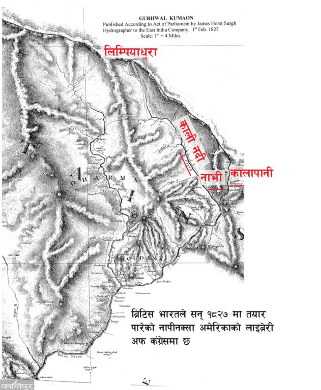 तत्कालीन ब्रिटिस भारतले सन् १८२७, सन् १८५६ र सन् १८७९ मा प्रकाशित गरेका नक्सामा लिम्पियाधुराबाट निस्किएको नदी नै काली हो भन्ने पुष्टि हुन्छ । अमेरिकाको लाइब्रेरी अफ कंग्रेसमा सन् १८२७ तथा सन् १८७९ को नक्सा तथा लन्डनको ब्रिटिस म्युजियम लाइब्रेरीबाट १८५६ को नक्सा ल्याएर नेपालका सीमाविदहरुले नेपाल सरकार र नेपाली जनतासामु प्रस्तुत गर्दै आएको छन् ।