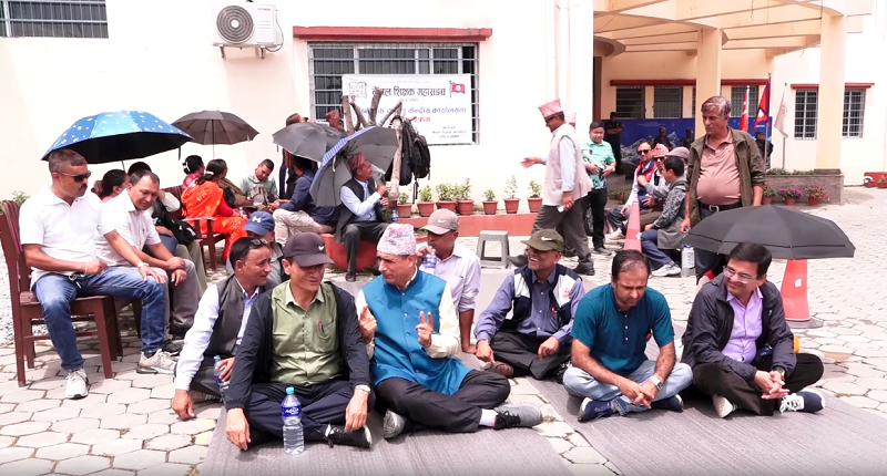 एमाले पार्टी कार्यालयमा शिक्षक महासङ्घकाे धर्ना