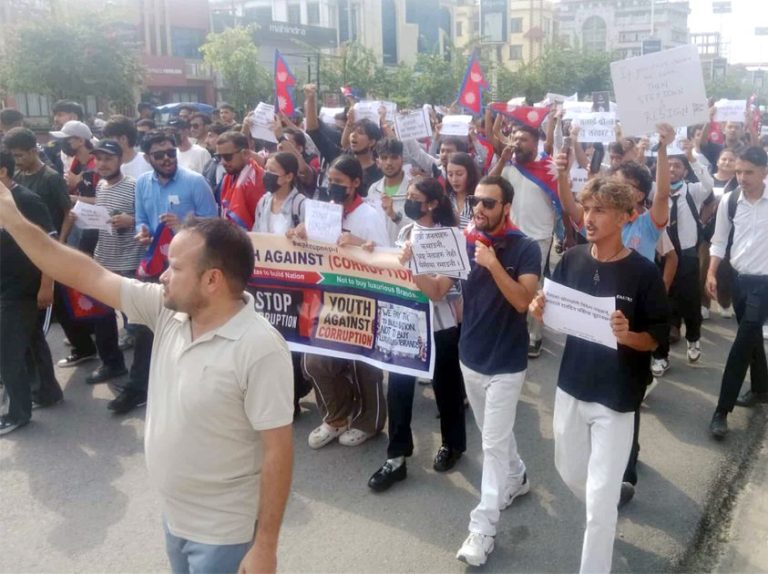 काठमाडौं २३ भदौं । ‘असन्तुष्टि चरम छ, नेताको गोजी गरम छ’, ‘जेनजी चिच्याउँछ, भ्रष्टहरूलाई गिज्याउँछ’, ‘कता हिँडेको ट्याक्स लुटेर ?’, ‘स्वतन्त्र आवाज हाम्रो अधिकार’, स्टप करप्सन लगायतका नारा लेखेका प्लेकार्ड बोकेर उनीहरूले काठमाडँैंको माइतीघरमा प्रदर्शन गरिरहेका छन् ।