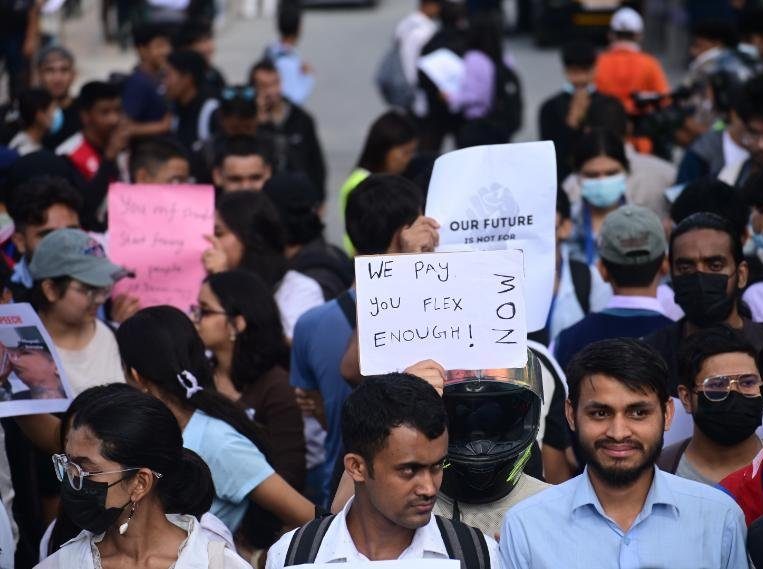 उनीहरुले भ्रष्टाचार र अव्यवस्था विरुद्ध लेखिएका विभिन्न प्लेकार्ड समेत बोकेका छन् ।