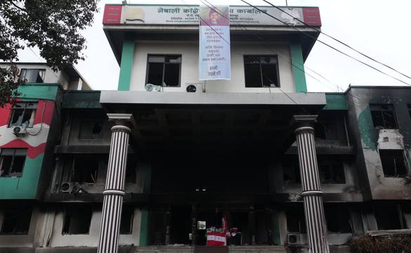 काठमाडौं ६ असोज । ​गत भदौ २४ गते भएको आगजनीमा नेपाली कांग्रेसको केन्द्रीय कार्यालय सकित देशभरका ४८ वटा कार्यालयमाथि आक्रमण आगजनी भएको छ । आक्रमणमा कम्तीमा १० करोड रुपैयाँको क्षति भएको कांग्रेसले जनाएको छ ।