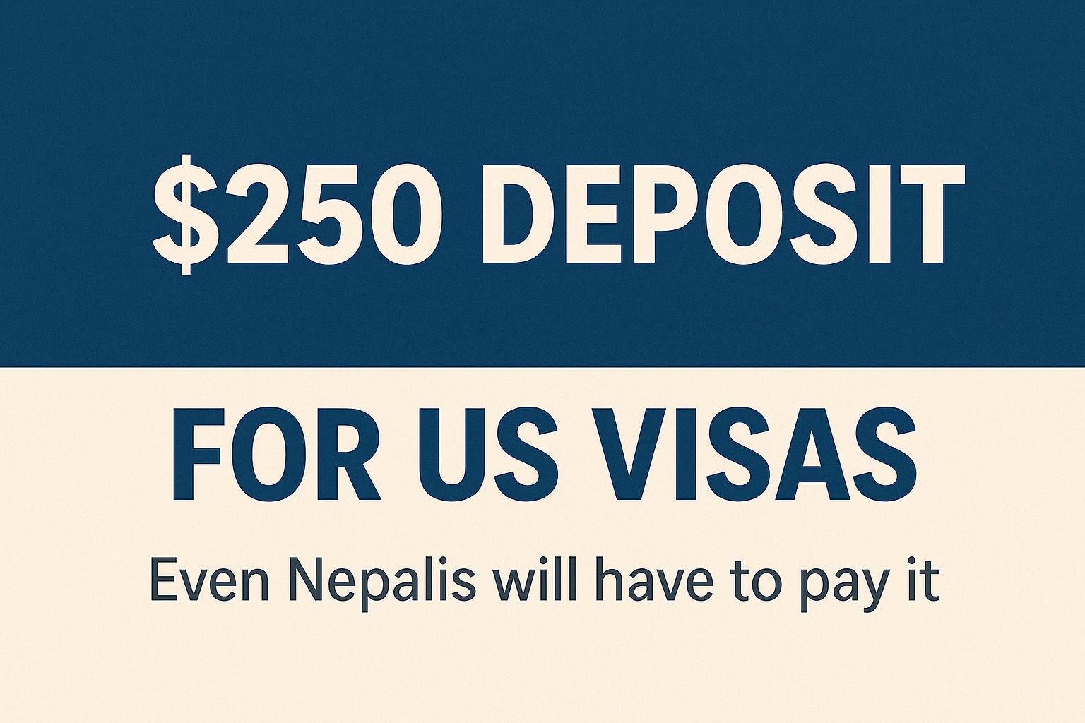 ट्रम्प प्रशासनले अमेरिकाको भिजिटर लगायतका गैर आप्रवासी भिसाका लागि २५० डलर धरौटी राख्नुपर्ने नियम अक्टोबर १ देखि लागु गर्ने तयारी गरेको छ । ट्रम्प प्रशासनबाट हालै लागू गरिएको वन बिग ब्यूटिफुल बिल एक्टको प्रावधान अनुसार भिसा इंटिग्रिटी शुल्कका नाममा उक्त रकम तिर्नुपर्नेछ।