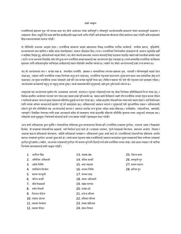 उनीहरुले भदौ २३, २४ गते भएको जेनजी आन्दोलनको सन्देशअनुसार अघि बढ्न पनि आग्रह गरेका छन्।