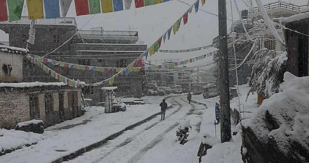 मुस्ताङ, ११ कात्तिक । मुस्ताङमा बिहानैदेखि हिमपात भएको छ । उपल्लो मुस्ताङको लोमान्थाङ र लोघेकर दामोदर कुण्ड गाउँपालिकाको बस्ती तथा आसपासका क्षेत्रका हिमपात भएको हो ।