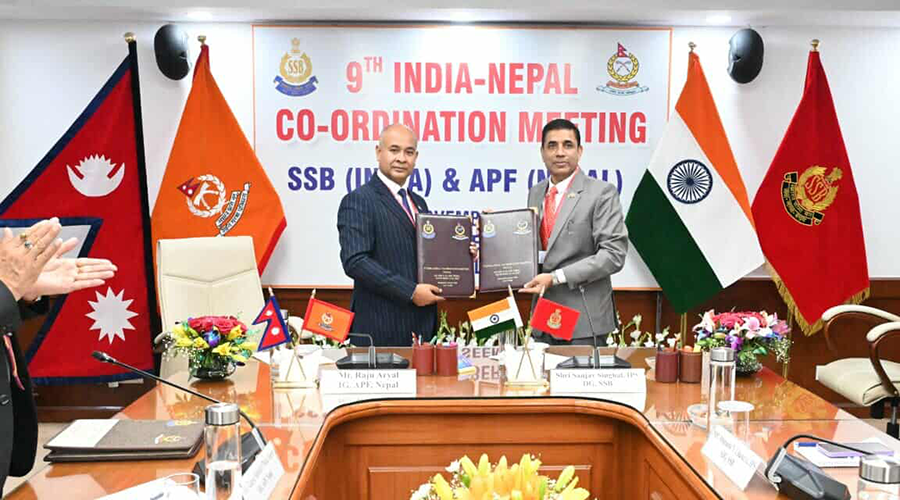 काठमाडौं, ३० कात्तिक । सशस्त्र प्रहरी बल, नेपाल र भारतको सशस्त्र सीमा बल (एसएसबी) बीचको नवौँ समन्वयात्मक बैठक सम्पन्न भएको छ ।बैठक २६९२८ कात्तिकसम्म भारतको नयाँ दिल्लीमा सञ्चालन भएको थियो ।बैठकमा सीमा अपराध नियन्त्रण, लागुऔषध ओसारपसार नियन्त्रण, अवैध चोरीनिकासी तथा पैठारी नियन्त्रण, अवैध आवतजावत नियन्त्रण, सूचना तथा तालिम आदानप्रदान, संयुक्त सीमा गस्ती र सीमा सुरक्षालाई थप सुरक्षित बनाउन समन्वय र सहकार्य गर्ने विषयमा दुई सुरक्षा निकायबीच छलफल भएको थियो ।