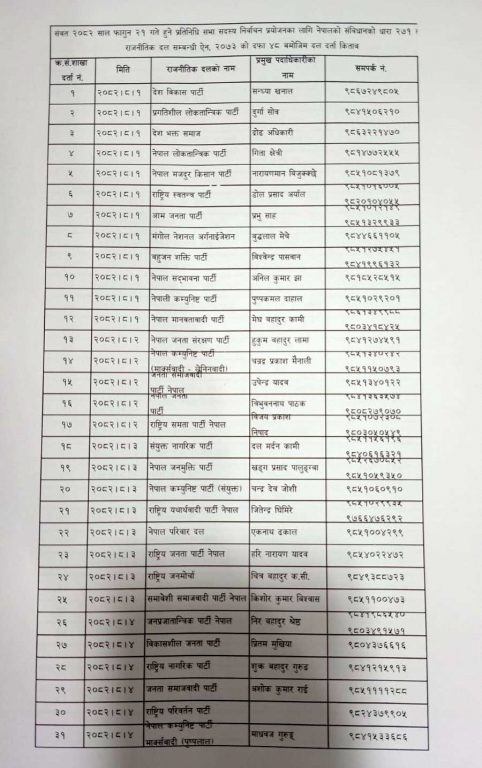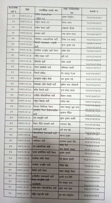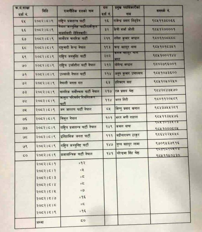 निर्वाचनका लागि दलहरूको आकर्षण, दर्ता भए यी ८० दल (सूचीसहित)