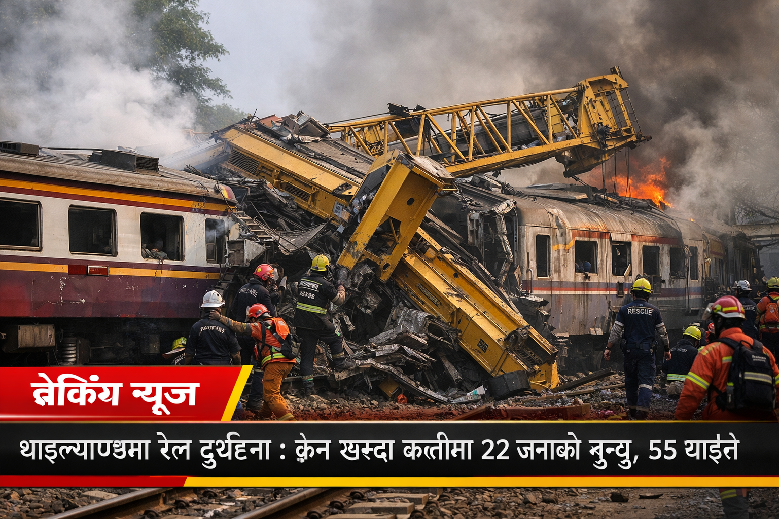 थाइल्याण्डमा रेल दुर्घटना : क्रेन खस्दा कम्तीमा २२ जनाको मृत्यु, ५५ घाइते