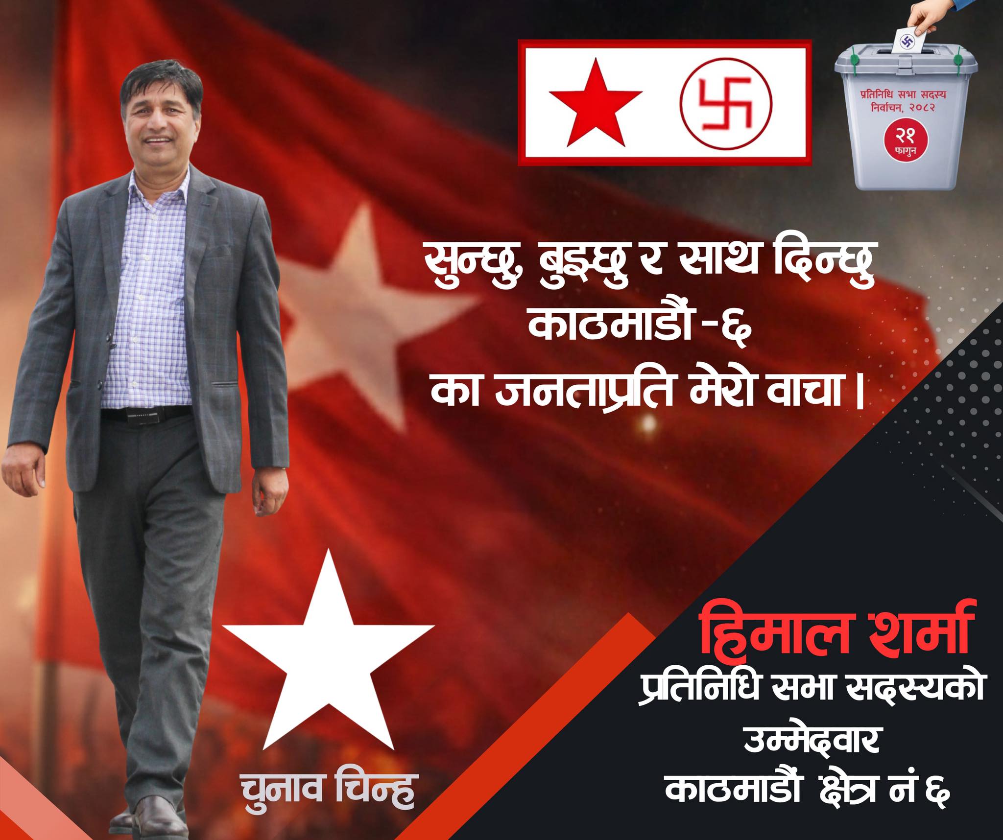 काठमाडौं, नेकपा (नेपाली कम्युनिष्ट पार्टी) ले आगामी प्रतिनिधिसभा निर्वाचनमा काठमाडौं क्षेत्र नम्बर ६ बाट हिमाल शर्मालाई उम्मेदवार बनाएको छ। जनयुद्धका पूर्वलडाकु तथा क्रान्तिकारी विद्यार्थी संगठनका पूर्व इन्चार्ज शर्माको संघर्षपूर्ण जीवनीले युवा मतदातालाई आकर्षित गर्न सक्छ। उनको उम्मेदवारीले पार्टीमा पुस्तान्तरण र युवा नेतृत्वको बहसलाई थप बल पुर्याएको छ।