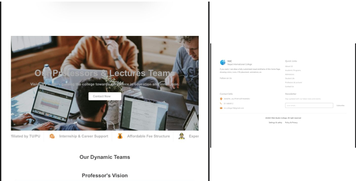 कलेजले कोरियन स्टडिज, एआई सफ्टवेयर इन्जिनियरिङ, बिजनेस स्टडिज जस्ता विषयहरू अध्यापन गर्ने दाबी गरेको थियो। वेबसाइटमा ‘एमओयू गारेन्टेड क्रिश्चियन कलेज’ भनेर प्रचार गरिएको थियो भने कोरियन भाषा विद्यालय खोल्ने घोषणा पनि गरिएको थियो।