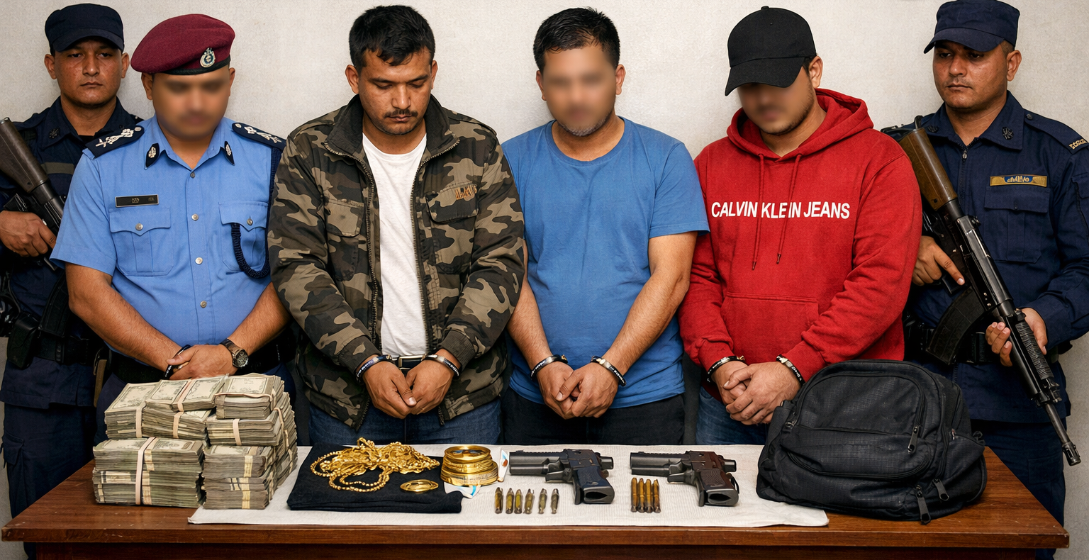 पक्राउ पर्नेमा त्रिभुवन अन्तराष्ट्रिय विमानस्थलमा कार्यरत प्रहरी हवल्दार कर्णबहादुर सुनार समेत रहेको अपराध अनुसन्धान कार्यालयका एसएसपी सन्तोष खड्काले बताउनुभयो। ‘प्रहरी हवल्दारसहित चार जनालाई पक्राउ गरेर अनुसन्धान अघि बढाएका छौं,’ एसएसपी खड्काले भन्नुभयो । ‘सस्तोदरमा सुन दिन्छौं’ भन्दै ६० लाख लुटपाट गरिएको प्रहरीले बताएको छ । सुन किन्न भनेर रकम लिएर आएपछि सीआईबीको प्रहरी भन्दै रकम लुटिएको प्रहरीको भनाइ छ । पक्राउ परेकाहरूमाथि अनुसन्धान भइरहेको प्रहरीले बताएको छ ।