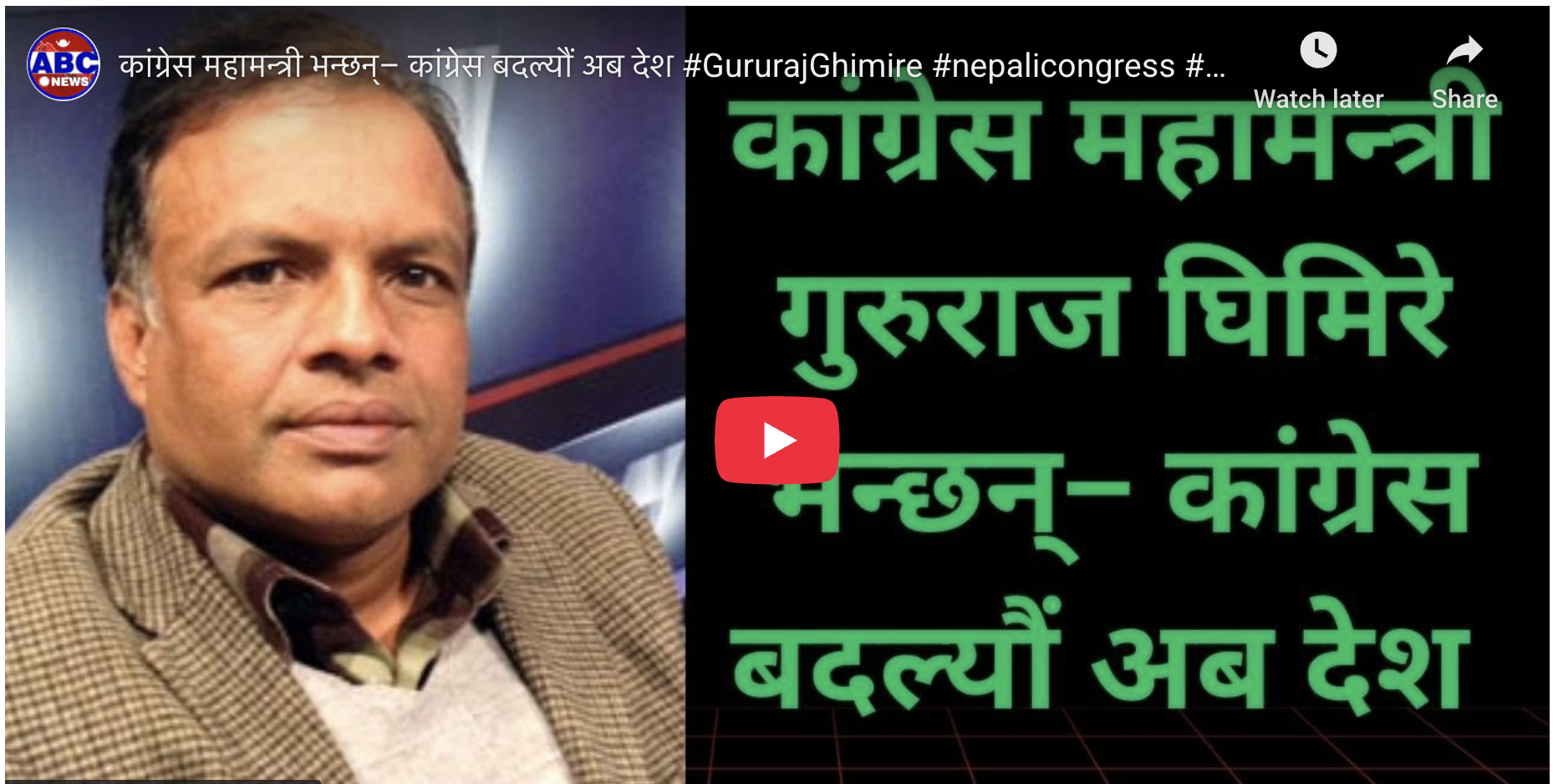 मोरंग क्षेत्र नं. ४ का समेत प्रत्यासी रहेका घिमिरेसँग एबीसी टेलिभिजनका प्रधानसम्पादक शुभशंकर कँडेलले गरेको विस्तृत कुराकानीमा कांग्रेसको इतिहास देखि वर्तमान र भावी चुनौतिसम्मका विविध विषयमा गरिएको कुराकानीले कांग्रेसको आन्तरिक अवस्थाको ऐना देखाएको छ ।
