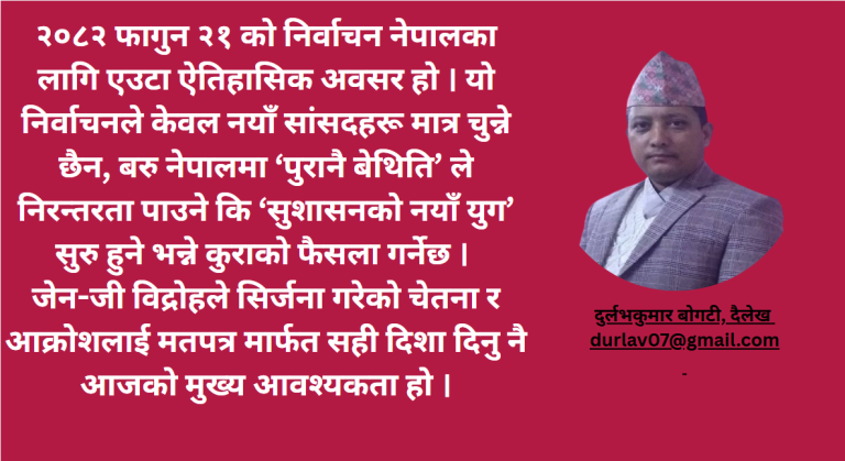 २०८२ फागुन २१ गते हुन गईरहेको प्रतिनिधि सभा सदस्यको निर्वाचन नेपालको लोकतान्त्रिक इतिहासमा केवल एक नियमित चुनावी प्रक्रिया मात्र होईन, यो दशकौँ देखि जकडिएको भ्रष्टाचार, कुशासन र राजनीतिक बेथिति विरुद्ध नेपाली युवा पुस्ताले गरेको ‘जेन-जी’ (Gen-Z) विद्रोहको एउटा निर्णायक संवैधानिक अवतरण हो । २०८२ भदौमा सामाजिक सञ्जाल माथिको प्रतिबन्ध र राजनीतिक नेतृत्वको विलासी जीवनशैली विरुद्ध … Continue reading “भ्रष्टाचार नियन्त्रण र सुशासन” — निर्वाचनको प्रमूख एजेन्डा कहिले बन्छ ?