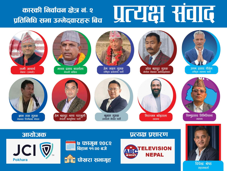 पोखरा, ६ फागुन । जेसीआई पोखरा (पोखरा जेसीज) द्वारा आयोजना हुन लागेको ‘ककस प्रोग्राम–२०२६’ को एबिसी टेलिभिजनले प्रत्यक्ष प्रसारण गर्ने भएको छ ।
