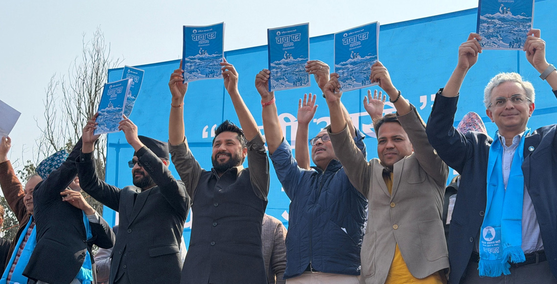 सुर्खेत/काठमाडौं । राष्ट्रिय स्वतन्त्र पार्टी (रास्वपा) ले फागुन २१ को प्रतिनिधिसभा निर्वाचनलाई लक्षित गर्दै आफ्नो चुनावी ‘वाचापत्र’ सार्वजनिक गरेको छ । कर्णाली प्रदेशको राजधानी सुर्खेतमा आयोजित आमसभामा पार्टी सभापति रवि लामिछाने, वरिष्ठ नेता बालेन्द्र शाह (बालेन) र उपसभापति स्वर्णिम वाग्लेले संयुक्त रूपमा यो वाचापत्र सार्वजनिक गरे ।