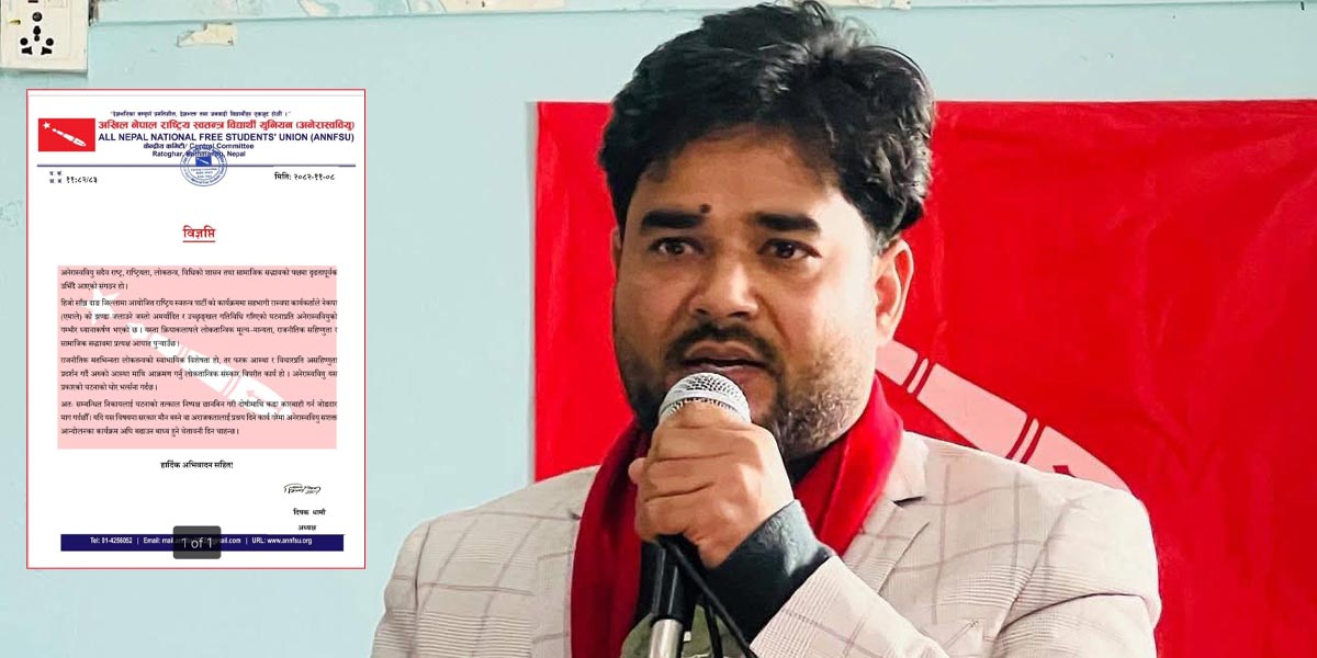 ‘सरकार मौन बस्ने वा अराजकतालाई प्रश्रय दिने कार्य गरेमा अनेरास्ववियु सशक्त आन्दोलनका कार्यक्रम अघि बढाउन बाध्य हुने चेतावनी दिन चाहन्छ’, धामीले भनेका छन् ।