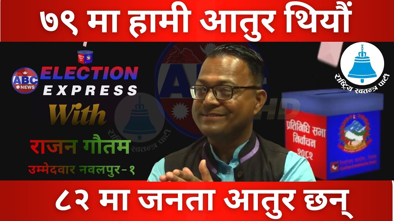 एबीसी टेलिभिजनको कार्यक्रम ‘इलेक्सन एक्सप्रेस’ अन्तर्गत नवलपुर–१ मा राष्ट्रिय स्वतन्त्र पार्टी (रास्वपा) का उम्मेदवार राजन गौतम सँग गरिएको कुराकानीमा उनले यसपटकको चुनावी माहोल अघिल्लो निर्वाचनभन्दा फरक रहेको दाबी गरे।