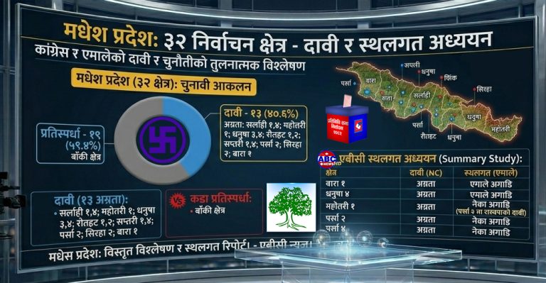कांग्रेसले आफूलाई पहिलो दल बनाउने दाबी गरिरहे पनि रास्वपाको युवा लहर र एमालेको राष्ट्रवादी आधारले कडा प्रतिस्पर्धा छ।