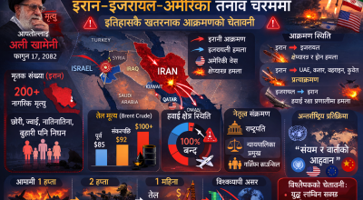 यसअघि अमेरिकाका राष्ट्रपति डोनाल्ड ट्रम्पले इरानका सर्वोच्च नेता आयतोल्लाह अली खामेनी मारिएको बताएका थिए । ट्रम्पले ट्रुथ सोसलमार्फत् खामेनी मारिएको दाबी गरे पनि इरानबाट पुष्टि हुन सकेको थिएन ।