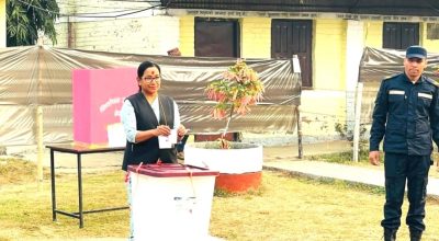 प्रधानमन्त्री कार्की र कार्यवाहक निर्वाचन आयुक्त भण्डारीले मतदान गरे