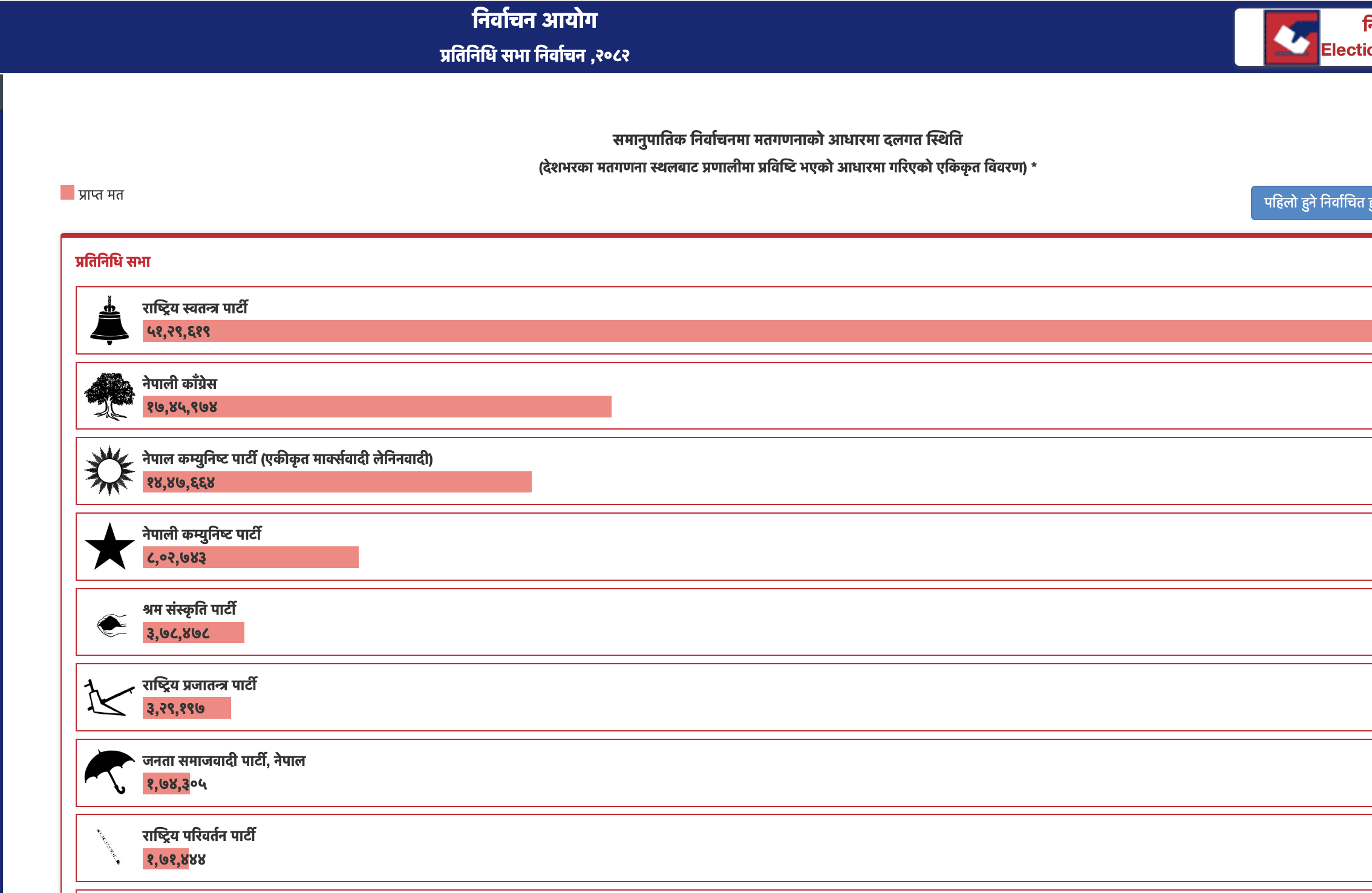 समानुपातिकतर्फ एक करोड सात लाख मत गणना: कसको कति मत?