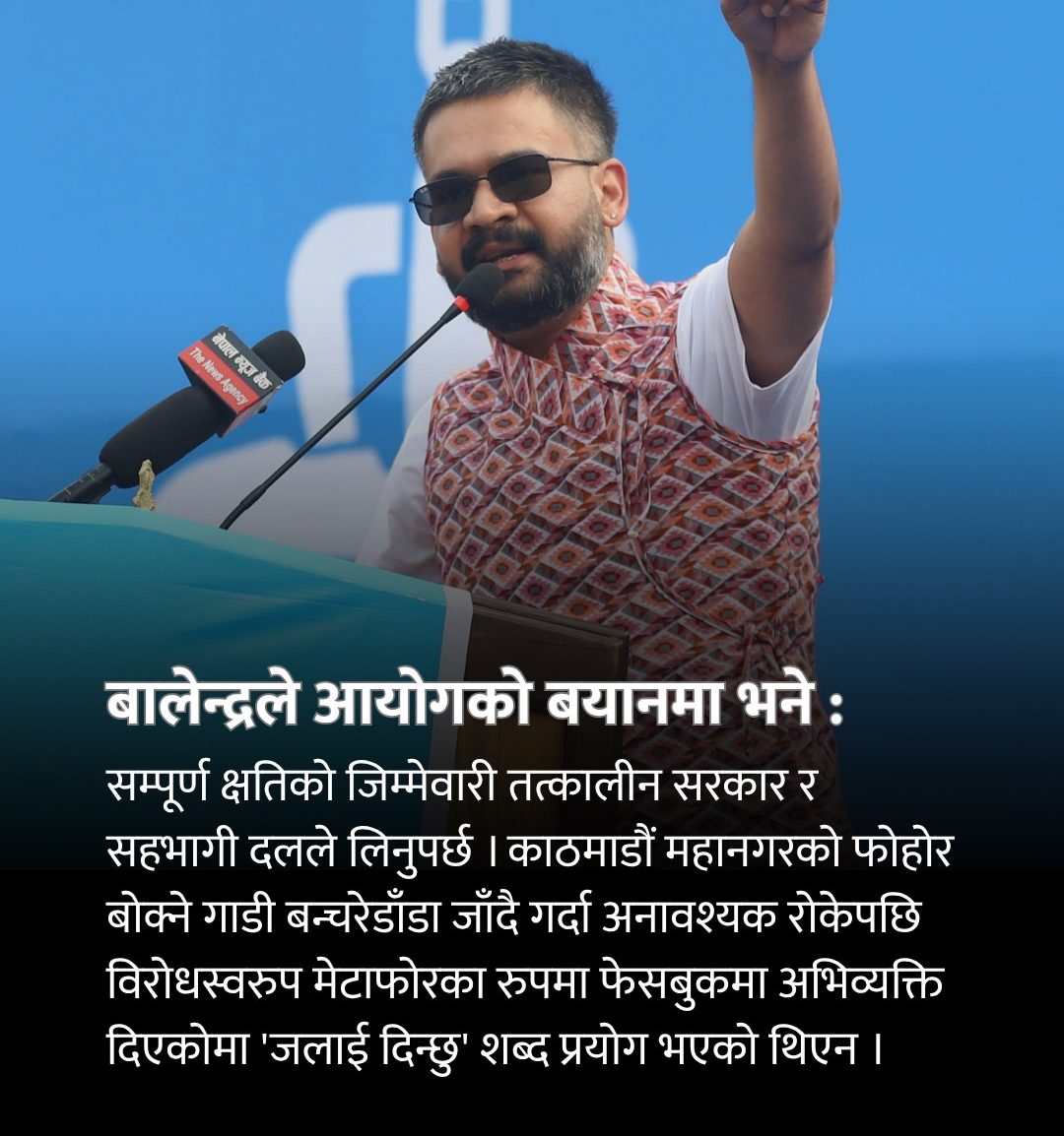 “तत्कालीन सरकारले अपराध र आतंकवादी क्रियाकलाप गरेको हो। सम्पूर्ण क्षतिको जिम्मा तत्कालीन सरकार र सहभागी दलले लिनुपर्छ,” बालेनको कडा भनाइ छ।