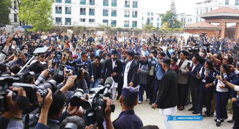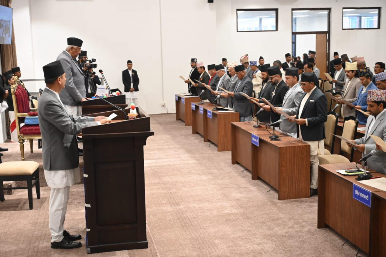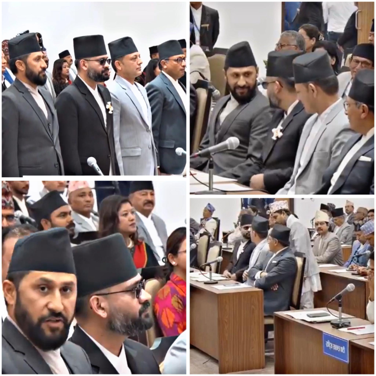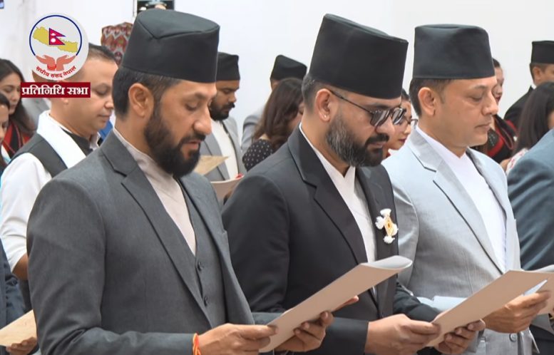 काठमाडौं, १२ चैत — प्रतिनिधिसभाका नवनिर्वाचित सांसदहरूले पद तथा गोपनीयताको शपथ ग्रहण गरेका छन्। सिंहदरबारस्थित संसद्को अस्थायी भवनमा आयोजित विशेष समारोहमा उनीहरूले औपचारिक रूपमा शपथ लिएका हुन्।
