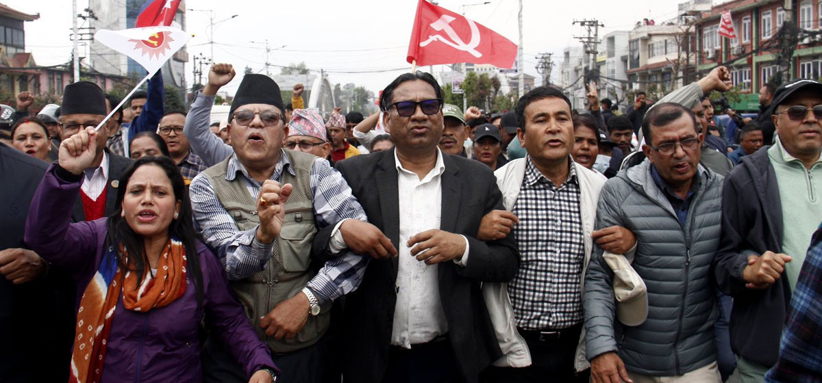 आज माइतीघरबाट सुरु भएको प्रदर्शनमा पार्टीका सचिवहरु भानुभक्त ढकाल, शेरधन राई, डा।राजन भट्टराई, महेश बस्नेतलगायतका नेताहरुको अगुवाइमा आन्दोलन थालिएको छ ।