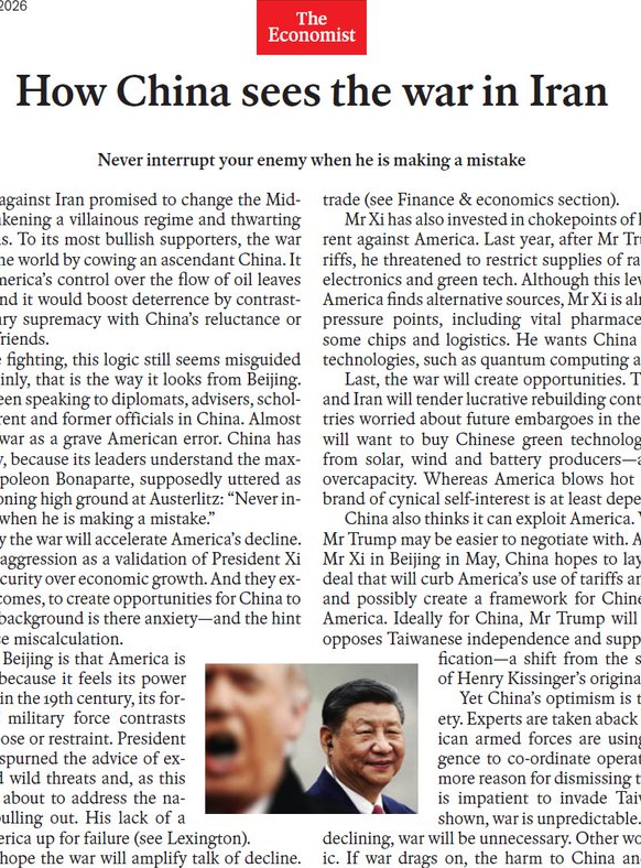 चीनले इरानको युद्धलाई कसरी हेर्छ ? : इकोनोमिष्ट