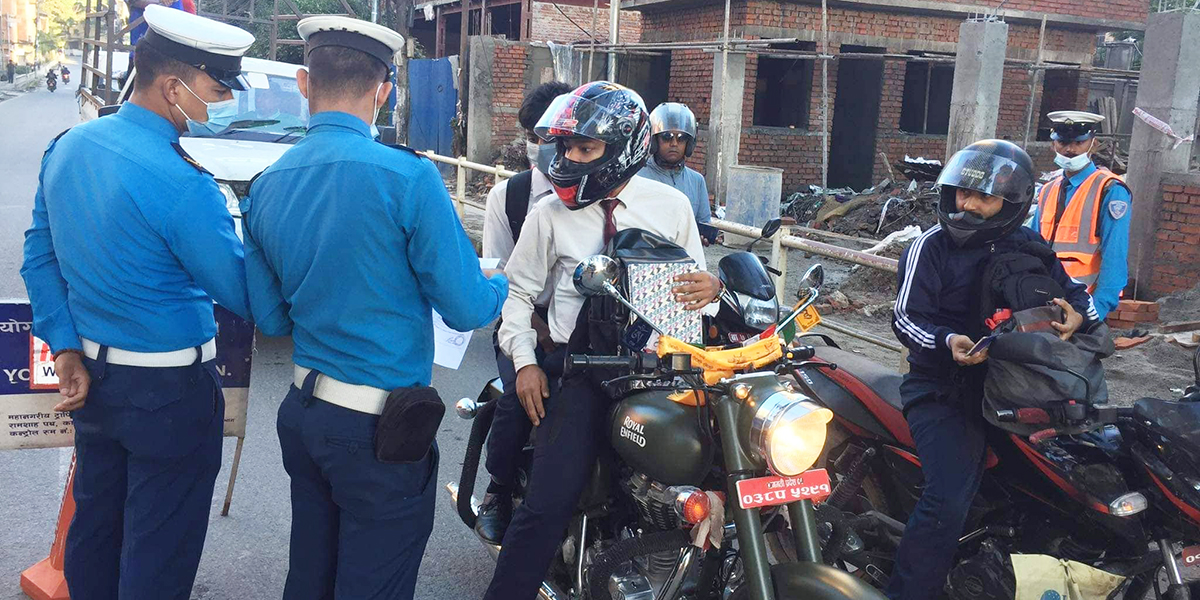 काठमाडौं, २९ चैत्र । काठमाडौं उपत्यका ट्राफिक प्रहरीले विशेष अभियानअन्तर्गत ‘सप्राइज चेकिङ’ का क्रममा आज एकैदिन एक सय एक सवारी चालकलाई कारबाही गरेको छ ।उपत्यकाका विभिन्न स्थानमा सञ्चालन गरिएको उक्त अभियानअन्तर्गत मादक पदार्थ ९मापसे० सेवन तथा ट्राफिक नियम उल्लंघन गर्नेलाई नियन्त्रणमा लिई कारबाही गरिएको हो । त्यस क्रममा मापसे गरी सवारीसाधन चलाउने पाँच जना, रातो बत्ती उल्लङ्घन गर्ने दुई र लेन अनुशासन पालना नगर्ने तथा अन्य ट्राफिक नियम उल्लङ्घन गर्ने ९४ वटा सवारीसाधनका चालकलाई कारवाही गरिएको उपत्यका ट्राफिक प्रहरी कार्यालयका प्रवक्ता एवं प्रहरी उपरीक्षक नरेशराज सुवेदीले जानकारी दिए । उनले भने, ‘मादक पदार्थ सेवन गरी सवारी चलाउनु कानुनविपरीत तथा दण्डनीय कार्य हो । यसले चालक स्वयं, यात्रु तथा सडक प्रयोगकर्ता सबैको ज्यान जोखिममा पार्दछ । सवारी चलाउँदा सावधानी अपनाऔँ । अकालमै ज्यान जानबाट जोगिऔँ।’यदि चालकले मादकपदार्थ वा लागूपदार्थ सेवन गरेको शङ्का लागेमा यात्रुले तत्काल नजिकैको प्रहरी कार्यालय, ट्राफिक कन्ट्रोल रूमको हटलाइन नम्बर १०३ र प्रहरीको हटलाइन नम्बर १०० मा खबर गर्न पनि उनले आग्रह गरे ।