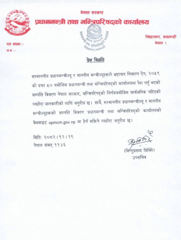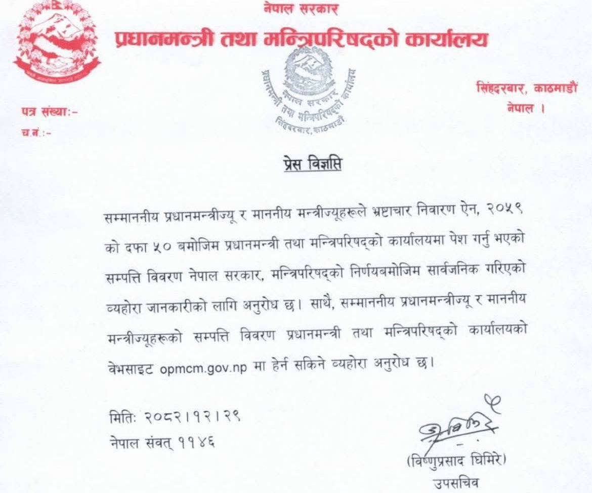 प्रधानमन्त्री र मन्त्रीहरुको सम्पत्ति विवरण सार्वजनिक, को कति धनी ? (विवरणसहित)