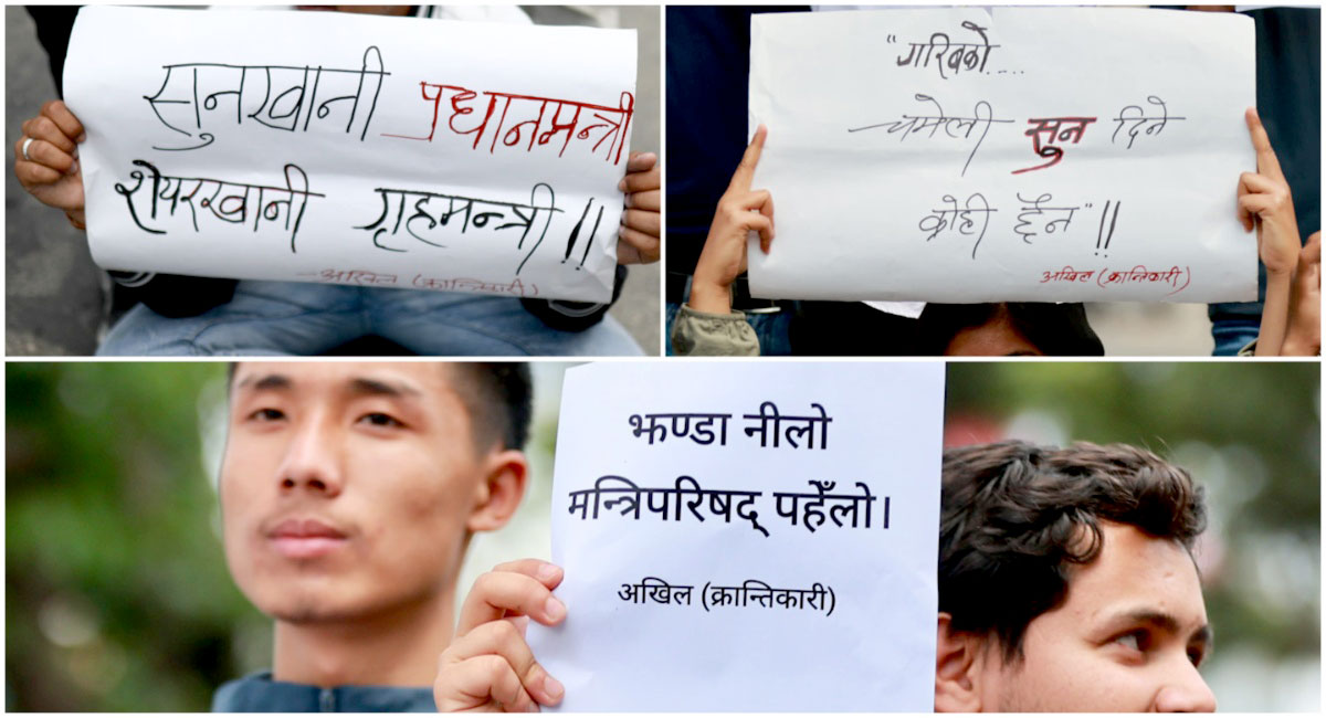 मन्त्रीहरूको सम्पत्तिको वैधानिक आयस्रोत खुलाउन माग राखेर प्रदर्शन