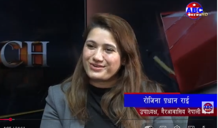 काठमाडौ , ४ बैशाख । गैरआवासीय नेपाली संघ ( एनआरएनका उपाध्यक्ष रोजीना प्रधान राईले विदेशमा रहेका नेपाली युवाको ज्ञान, सीप तथा प्रविधिलाई देश विकासमा उपयोग गर्ने बताएकी छन । एविसी टेलिभिजनको कार्यक्रम एविसी वाचमा उनले यस्तो बताएकी हुन ।