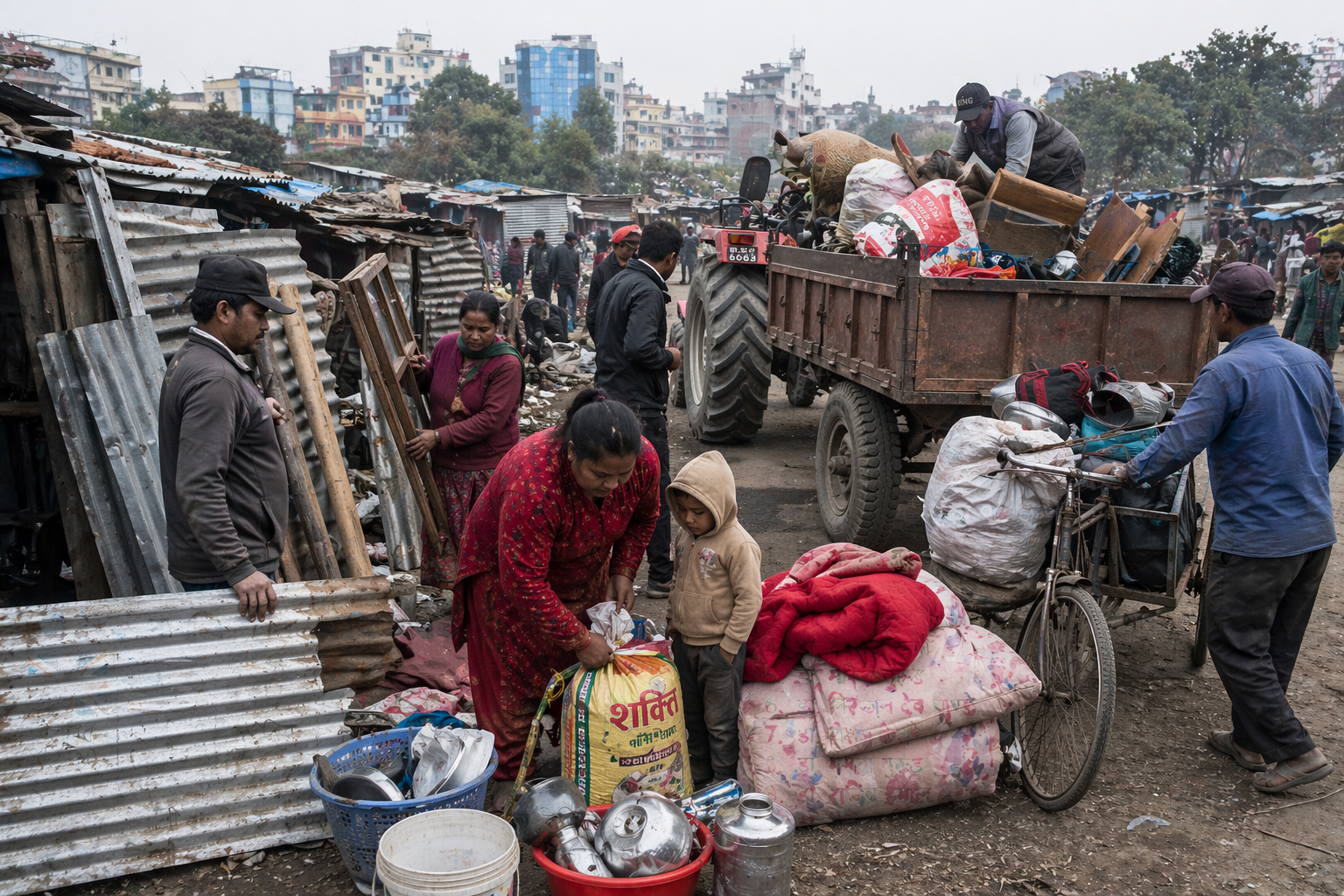 काठमाडौं, ११ वैशाख । सरकारले शुक्रवार साँझसम्म बस्ती खाली गर्न परिपत्र गरेसँगै थापाथलीस्थित सुकुम्वासीहरूले आफ्ना अमूल्य सामानहरू सार्न शुरु गरेका छन् । वर्षौंदेखि बसेको झुपडी, जोगाएर राखिएका साना–साना खुशीका पाटाहरू र नानीबाबुहरूको भविष्य—सबै एउटै सानो झोलामा अटाउन खोज्दा त्यहाँको परिदृश्य अत्यन्तै हृदयविदारक देखिएको छ । कोही आफ्नो च्यातिएको ओछ्यान मिलाउँदै छन् भने कोही अब कहाँ जाने भनेर चिन्तामा छन् । उनीहरु भन्दैछन् की हामीलाई गरिब हुनुको सजाय दिइँदैछ कि अर्कै केही ? मानिसहरू हतार–हतार आफ्ना जस्तापाता, काठका फल्याक र किचनका भाँडाकुँडा ट्याक्टर र रिक्साहरूमा लोड गरिरहेका छन् । कतिपयले त आफ्नो घर आफैँले भत्काउन शुरु गरेका छन्, मानौँ उनीहरू आफ्नो पुरानो पहिचानलाई आफैँ मेट्न बाध्य छन् ।