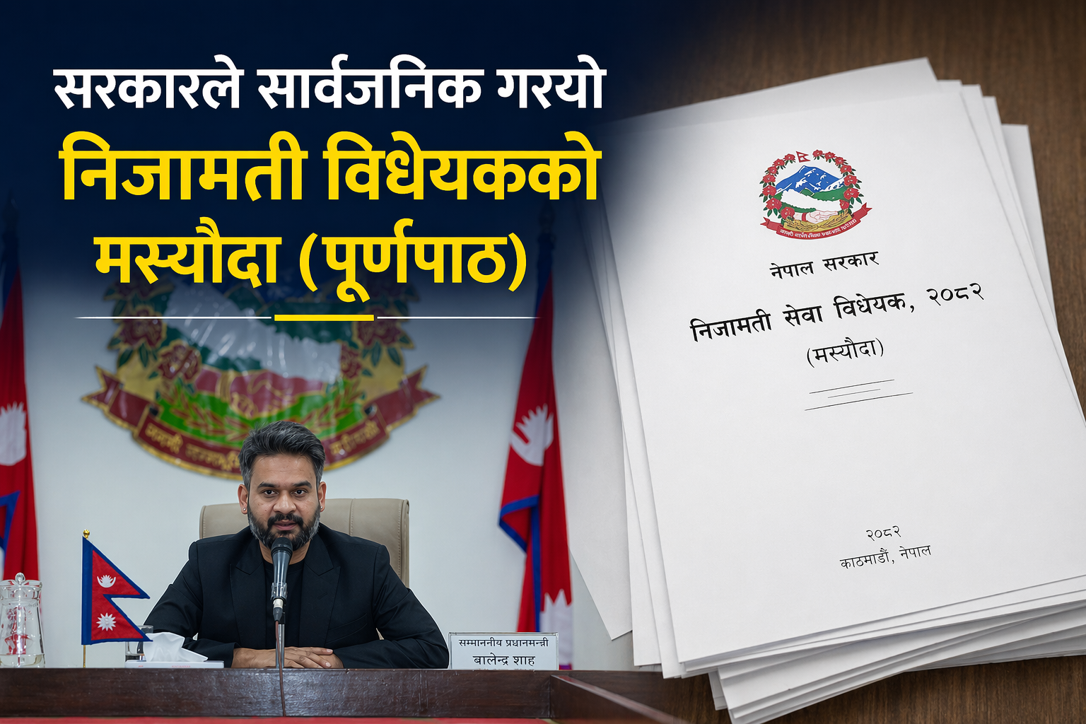 काठमाडौँ | लामो समयदेखि प्रतिक्षामा रहेको संघीय निजामती सेवा विधेयकको मस्यौदा सरकारले अन्ततः सार्वजनिक गरेको छ। संघीय मामिला तथा सामान्य प्रशासन मन्त्रालयले विधेयकको प्रारम्भिक मस्यौदा तयार गरी सरोकारवालाहरूको सुझाव र प्रतिक्रियाका लागि खुला गरेको हो।