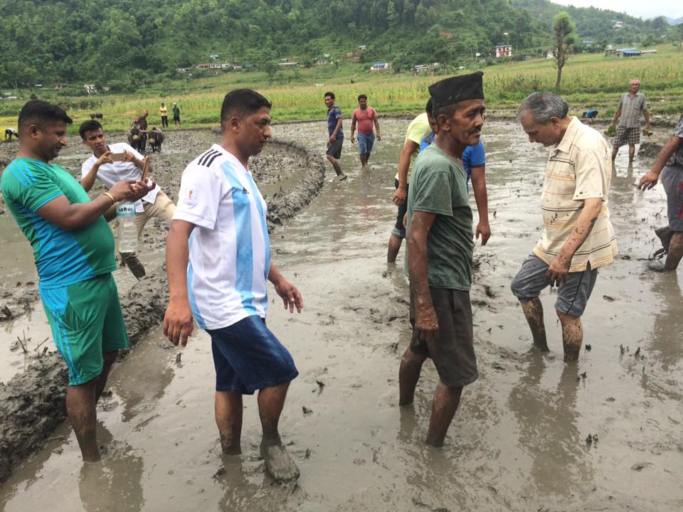 शुक्रबार उनी सिरानचोक गाउँपालिका–५ जरेबरस्थित कृष्ण कुमालको खेतमा रोपाईमा सहभागी भए । त्यहाँ उनले बीउ काड्ने, गोरु जोतेर हिल्याउने र धान रोप्ने कामसमेत गरे । उनी टिसर्ट र हाफपेन्ट लगाएर रोपाईमा सहभागी भएका थिए ।