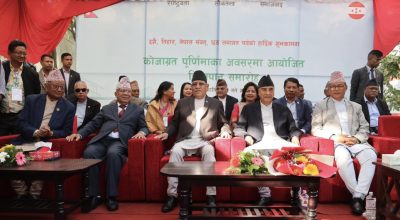 काठमाडौं १२ कात्तिक। प्रधानन्यायाधीश विश्वम्भरप्रसाद श्रेष्ठ चीन भ्रमणमा गएका छन् । चीनको सुप्रिम पिपुल्स कोर्ट अफ चाइनाका अध्यक्षको निमन्त्रणामा श्रेष्ठ नेतृत्वको टोली चीन भ्रमणमा गएको हो । प्रधानन्यायाधीशको टोलीले कात्तिक १५ देखि १७ गतेसम्म चीनको सुप्रिम पिपुल्स कोर्ट अफ चाइनाको औपचारिक भ्रमण गर्नेछ । त्यसक्रममा ...