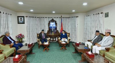 काठमााडौं २१ असार । नेकपा एमालेले प्रधानमन्त्री पुष्पकमल दाहाल प्रचण्डको राजीनामा मागेपछि बचाउमा सत्तारुढ गठबन्धनका दलहरू एक ठाउँमा उभिएका छन्। प्रधानमन्त्री निवास बालुवाटार बसेको गठबन्धनको बैठकले प्रधानमन्त्रीको राजीनामा माग्ने एमालेको कदम असंसदीय भएको निष्कर्ष निकालेको छ। ‘एमालेले प्रधानमन्त्रीको राजीनामा माग्नु संसदीय मर्यादाबाहिरको कुरा हो,’ गठबन्धनको ...