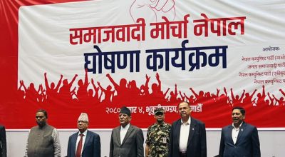 काठमाडौं ४ असार । माओवादी केन्द्रका अध्यक्ष एवं प्रधानमन्त्री पुष्पकमल दाहाल प्रचण्डले ६ वर्षअघि एमाले र माओवादीबीच एकता गर्नु हतारो भएर दुर्घटना भएजस्तो समाजवादी मोर्चा नहुने दावी गरेका छन् । माओवादी केन्द्रसहित चार दलको समाजवादी मोर्चा घोषणा कार्यक्रममा उनले २०७४ मा एमाले र माओवादीबीच पार्टी ...