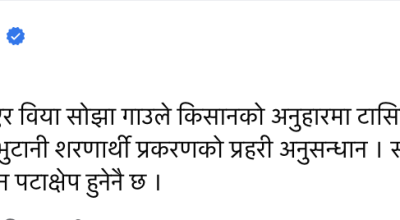 प्रधानमन्त्रीले भारत भ्रमणमा कर्णाली वा कोशीमा सम्झौता गर्ने शंका छ : सूर्यनाथ काठमाडौँ ११ जेठ । नेपाल-भारत प्रवुद्ध समूहका सदस्य सूर्यनाथ उपाध्यायले प्रधानमन्त्री पुष्पकमल दाहालले भारत भ्रमणका क्रममा कर्णाली वा कोशी नदीमा सम्झौता गर्नसक्ने आशंका व्यक्त गरेका छन्। बिहीवार राष्ट्रिय सभा अन्तर्गतको राष्ट्रिय सरोकार तथा ...